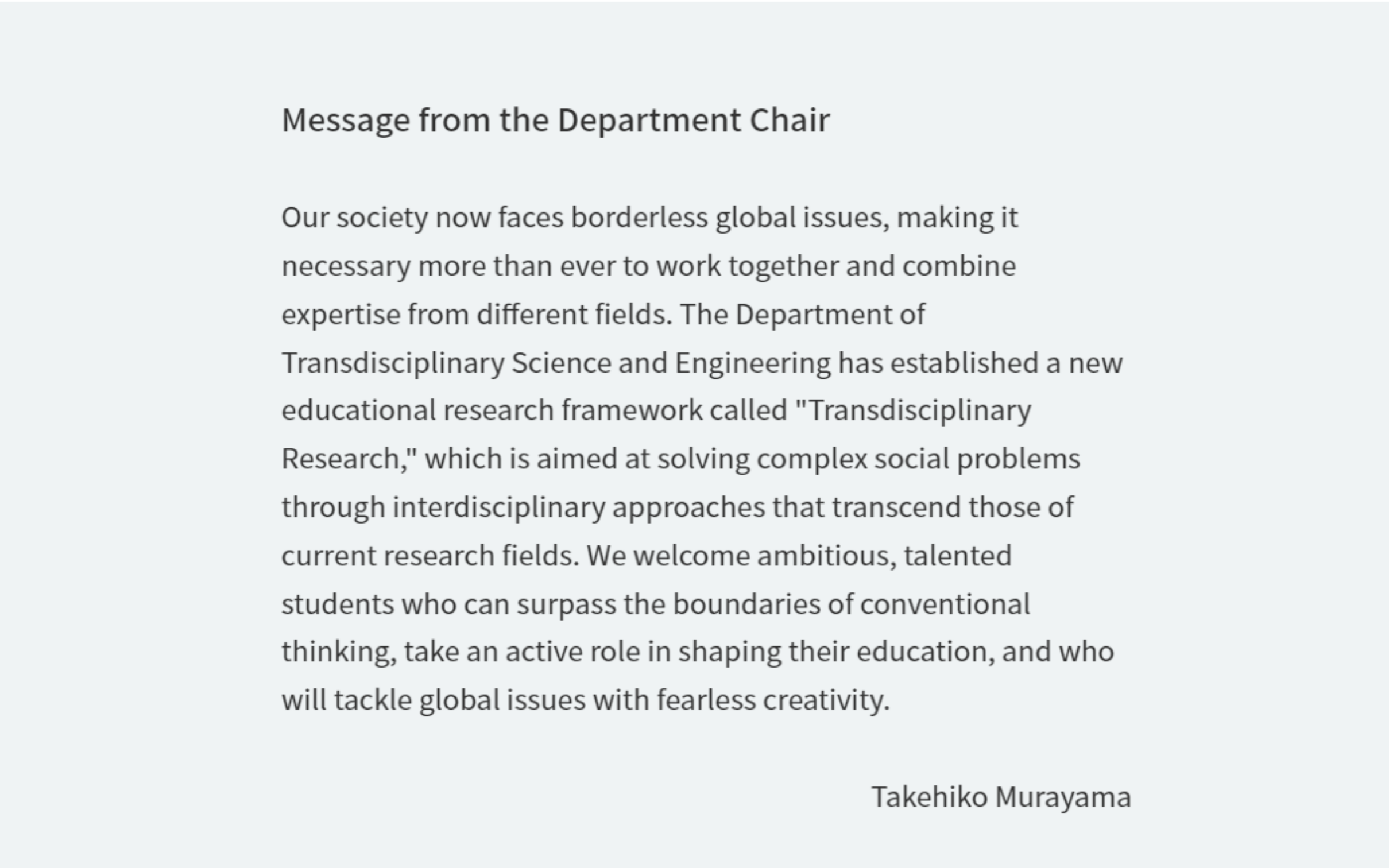 Apr 2019 - Sep 2022, Dept. of Transdiciplinary Science and Engineering.
